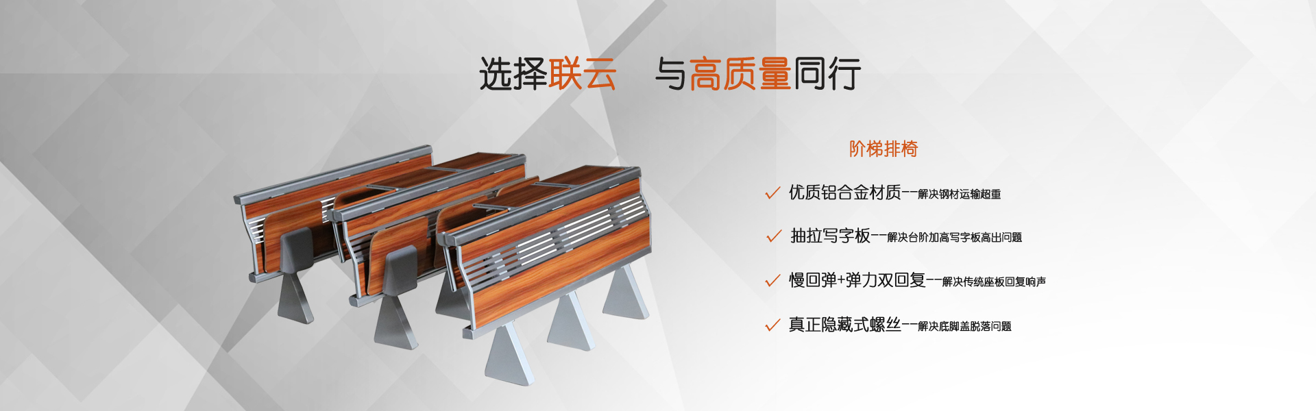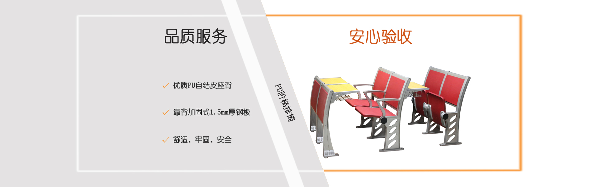 選擇階梯排椅常見的三個注意點:選擇階梯式排椅常見的三個注意點:1、看材質,優質多層板和阻燃防火板、膠合板單板選擇一級板材,這樣選擇的板材拼接,無裂縫,無孔洞,周邊罩優質聚脂清漆,邊沿整齊平滑,層紋清楚,這樣的板材是比較好的板材。